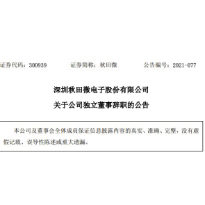 11月26日消息,秋田微稱,馮強(qiáng)因個(gè)人工作原因辭去公司董事會(huì)獨(dú)立董事及董事會(huì)下屬專門(mén)委員會(huì)委員職務(wù)。辭職后,馮強(qiáng)將不再擔(dān)任公司任何職務(wù)。馮強(qiáng)1966年生,2020年7月至今,任鹽田港資產(chǎn)運(yùn)營(yíng)管理有限公司董事長(zhǎng)、總經(jīng)理等職。