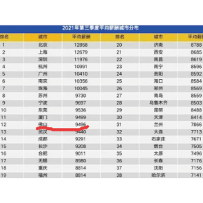 10月13日消息,智聯(lián)招聘發(fā)布《中國企業(yè)招聘薪酬報告》顯示,佛山2021第三季度平均薪酬9496元/月,列全國第12,全省第5。其中佛山平均薪酬最高行業(yè)是基金證券等投資行業(yè),僅次其后的為銀行和計算機軟件行業(yè)。