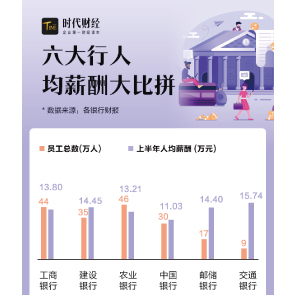 9月2日消息,各大上市銀行中報(bào)披露顯示,從營(yíng)收來(lái)看,工行以4677億元穩(wěn)坐頭把交椅,不過(guò)交通銀行以營(yíng)收增速15.29%位列第一。員工人數(shù)最少的交行上半年以人均15.74萬(wàn)元居首。農(nóng)行目前擁有46萬(wàn)名員工,在六大行中屬最大規(guī)模。