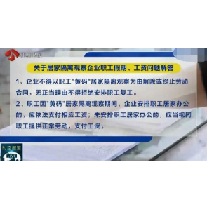8月11日消息,南京市人社局稱,職工因黃碼居家隔離觀察期間,企業(yè)安排職工居家辦公的,應(yīng)依法支付相應(yīng)工資,各企業(yè)還應(yīng)保障黃碼轉(zhuǎn)綠碼職工勞動權(quán)益。職工因紅碼實行隔離觀察,其間假期、工資支付等問題,參照黃碼職工處理。