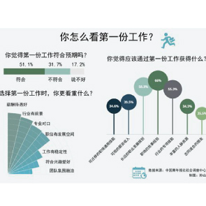 8月12日消息,中國青年報發(fā)布的調(diào)查顯示,薪酬待遇好(55.4%)和行業(yè)有前景(53.0%),是受訪者選擇第一份工作時普遍看重的。66.0%受訪者認(rèn)為應(yīng)該通過第一份工作收獲職場處事經(jīng)驗。51.1%受訪者覺得第一份工作符合自己預(yù)期。