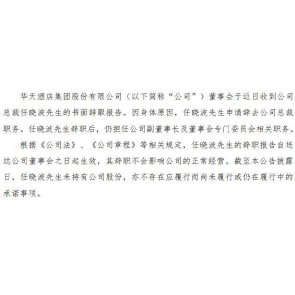 8月6日消息,華天酒店稱,因身體原因,任曉波申請辭去公司總裁職務。任曉波辭職后,仍擔任公司副董事長及董事會專門委員會相關職務。2020年公司披露年報顯示,任曉波從公司獲得的稅前報酬總額36.84萬元。