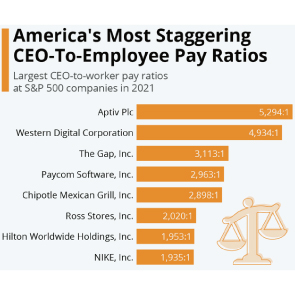 7月16日消息,美國(guó)AFL-CIO的年度報(bào)告,2020年標(biāo)普500指數(shù)公司CEO的平均收入為1550萬(wàn)美元,是員工工資中位數(shù)的299倍。平均而言,標(biāo)普500指數(shù)公司的老板們2020年薪酬增加70萬(wàn)美元,過(guò)去十年增加260萬(wàn)美元。