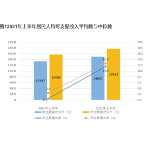 7月15日消息,國家統計局稱,2021上半年,全國居民人均可支配收入17642元,比上年同期名義增長12.6%,實際增長12.0%,增幅較高,主要是受2020上半年低基數影響,比2019上半年增長15.4%,兩年平均增長7.4%,實際增5.2%。