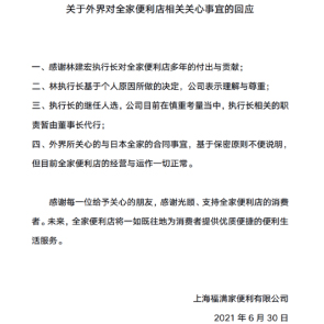 7月1日消息,中國大陸全家稱,執(zhí)行長林建宏將離職。目前,執(zhí)行長的繼任人選正在慎重考量當(dāng)中,執(zhí)行長相關(guān)的職責(zé)暫由中國全家董事長魏應(yīng)行代行。林建宏于2015年11月加盟全家,任公司執(zhí)行長一職,負(fù)責(zé)中國大陸市場。