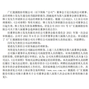 6月22日消息,廣匯能源稱,收到公司董事、總經(jīng)理韓士發(fā)遞交的辭呈。因被選舉為董事會新任董事長,韓士發(fā)申請辭去公司總經(jīng)理職務(wù)不再兼任。同時聘任閆軍擔(dān)任公司總經(jīng)理職務(wù),梁逍擔(dān)任公司常務(wù)副總經(jīng)理職務(wù),劉常進任副總經(jīng)理職務(wù)。