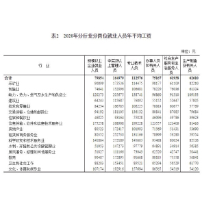 5月20日消息,國家統(tǒng)計局稱,2020年全國規(guī)模以上企業(yè)就業(yè)人員年平均工資79854元,比上年增長6.1%。其中中層及以上管理人員164979元,增5.2%,專業(yè)技術(shù)人員112576元,增6.4%,辦事人員和有關(guān)人員75167元增長6.0%。