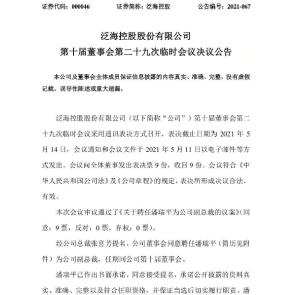 5月18日消息,泛??毓煞Q(chēng),方舟因工作調(diào)動(dòng)辭去公司副總裁職務(wù),而潘瑞平接任公司副總裁。方舟于2020年10月被聘任為泛海副總裁,任職僅7個(gè)月。潘瑞平歷任北京山海天物資貿(mào)易有限公司副總經(jīng)理、總經(jīng)理,山西泛海建設(shè)投資有限公司副董事長(zhǎng)等職。