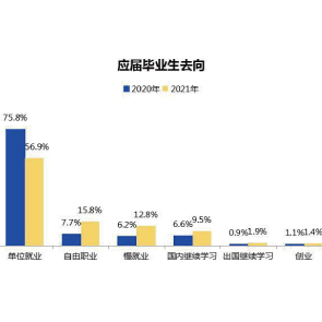 5月12日消息,智聯招聘發(fā)布的調查顯示,在2021應屆畢業(yè)生中,56.9%的大學生選擇畢業(yè)后加入就業(yè)大軍,較2020年收縮18.9個百分點,15.8%選擇自由職業(yè),同比上升8.1個百分點,12.8%選擇慢就業(yè),同比上升6.6個百分點。