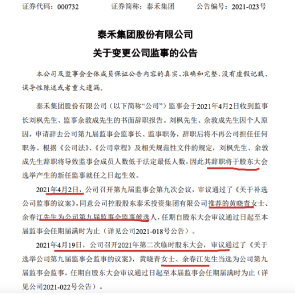 4月20日消息,泰禾集團(tuán)股份有限公司稱,監(jiān)事會(huì)收到監(jiān)事長(zhǎng)劉楓、監(jiān)事余敦成的辭呈。劉楓、余敦成未直接或間接持有泰禾集團(tuán)股份。同時(shí)黃曉青、余春江當(dāng)選為泰禾集團(tuán)監(jiān)事會(huì)監(jiān)事,黃曉青持有泰禾集團(tuán)股票221,600股。
