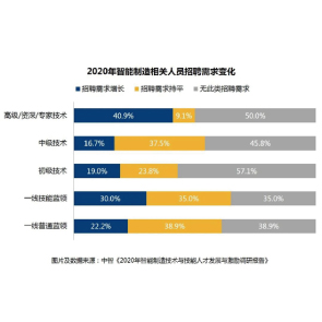 4月19日消息,CIIC發(fā)布的《2020年智能制造技術(shù)與技能人才發(fā)展與激勵調(diào)研》顯示,全國267家制造業(yè)企業(yè),對智能制造高級技術(shù)人才招聘需求增加,對于技能藍(lán)領(lǐng)招聘需求大于普工。技工和普工人員配置比例平均為36:64,預(yù)計技能人才占比將提升。