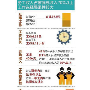4月15日消息,陜西省社科院發(fā)布的《陜西農(nóng)村進(jìn)城務(wù)工人員生存狀況研究》顯示,進(jìn)城務(wù)工人員離鄉(xiāng)打工的主因是改善家里經(jīng)濟(jì)條件,是收入主要來源,占家庭總收入70%。進(jìn)城務(wù)工人員平均收入不足4000元/月,其中47%的收入僅夠日常支出。