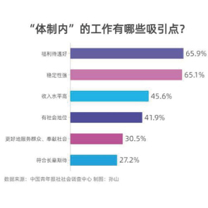 4月8日消息,中國青年報發(fā)布的調(diào)查顯示,45.4%受訪應(yīng)屆生覺得2021年體制內(nèi)工作機會更多了。選擇工作時,66.3%應(yīng)屆生會看重行業(yè)前景,57.6%應(yīng)屆生看重興趣愛好。對于就業(yè)支持,72.0%受訪應(yīng)屆生期待對接求職信息,收集招聘信息。