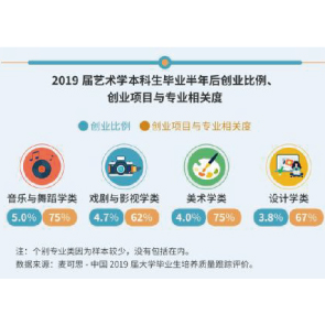 3月30日消息,MYCOS發(fā)布的調查顯示,藝術學本科生在畢業(yè)初期月收入2019屆5256元并不高,低于全國本科平均水平5440元。2019屆藝術學本科生中,畢業(yè)半年后有4.5%的人選擇自主創(chuàng)業(yè),比本科平均水平1.6%高出2.9個百分點。