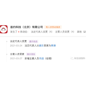 3月29日消息,天眼查App顯示,首約科技有限公司發(fā)生工商資料變更,原首汽約車CEO魏東退出法定代表人,由高捷接任。魏東2014年加入首汽租車任CEO,還曾任神州租車副總裁。近期首汽約車CTO張友星也離職,入職滴滴順風(fēng)車事業(yè)部。