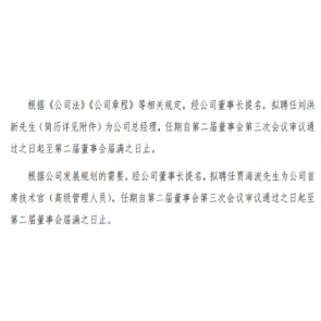 3月11日消息,美暢股份稱,賈海波為集中更多精力從事產(chǎn)品戰(zhàn)略規(guī)劃、產(chǎn)品研發(fā)等方面的工作,辭去公司總經(jīng)理職務(wù)。辭職后賈海波仍任公司董事、董事會專門委員會相關(guān)職務(wù)。聘任劉洪新為公司總經(jīng)理,此前其任海信集團有限公司總裁。