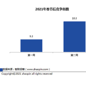 3月9日消息,智聯(lián)招聘發(fā)布的《2021年春招市場(chǎng)行情周報(bào)》此為第二期,春招市場(chǎng)正升溫,節(jié)后第二周競(jìng)爭(zhēng)指數(shù)10.3,本周IT服務(wù)進(jìn)入十大熱招行業(yè)。房地產(chǎn)與互聯(lián)網(wǎng)為應(yīng)屆生需求大戶。節(jié)后第二周平均招聘薪酬小幅抬頭,達(dá)9186元/月。