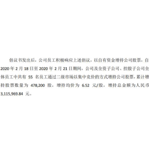 2月26日消息,九安醫(yī)療稱,公司及全資子公司、控股子公司全體員工中共有55名員工通過二級(jí)市場以集中競價(jià)的方式增持公司股票,累計(jì)增持股票數(shù)量為478,200股,增持均價(jià)為6.52元/股,增持總金額為人民幣3,115,969.84元。