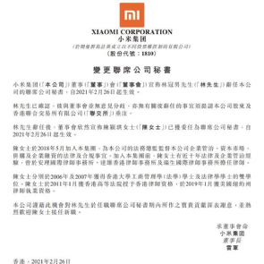 3月1日消息,小米集團(tuán)稱,公司林冠男辭任公司聯(lián)席公司秘書,陳穎琪獲委任。陳穎琪于2018年5月加入集團(tuán),為公司的法務(wù)總監(jiān)監(jiān)督本公司企業(yè)管治、資本市場、并購及企業(yè)融資的法律及合規(guī)事宜。加入集團(tuán)前,陳穎琪有近十年法律及企業(yè)管治經(jīng)驗(yàn)。