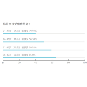 2月22日消息,貝殼研究院發(fā)布的《2021婚房消費(fèi)調(diào)查報(bào)告》顯示,90后、95后這一代年輕人中,54.1%的受訪者拒絕租房結(jié)婚,其中95后的接受度最低。近8成人購置婚房的預(yù)算在200萬以下,且超半數(shù)受訪者認(rèn)為房產(chǎn)證要寫上夫妻雙方的姓名。
