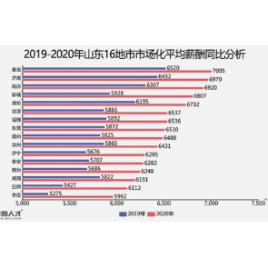 2月8日消息,齊魯人才網(wǎng)發(fā)布的《2020年山東省年度市場化平均薪酬報告》顯示,以2019-2020年山東16地市市場化平均薪酬同比分析來看,青島以7005元蟬聯(lián)榜首,濟南緊隨其后,以6970元位列第二,臨沂以6920元排在全省第三位。