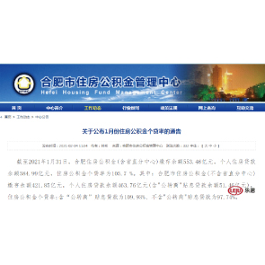 2月7日消息,合肥市住房公積金管理中心稱,截至2021年1月31日,合肥住房公積金繳存余額553.46億元,個(gè)人住房貸款余額584.99億元,住房公積金個(gè)貸率為105.7 %,再創(chuàng)新高。其中合肥市住房公積金繳存余額421.85億元。