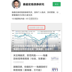 #2月4日消息,海通證券稱,海通證券研究所副所長、首席經(jīng)濟學(xué)家姜超確實即將離任。姜超是清華大學(xué)經(jīng)濟學(xué)博士畢業(yè),于2013年加入海通證券研究所,現(xiàn)任研究所副所長、首席經(jīng)濟學(xué)家。2006年以團隊成員身份獲得新財富債券研究第一名。
