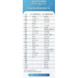 2月4日消息,21世紀(jì)經(jīng)濟(jì)報道統(tǒng)計顯示,截止2月3日,除河北和黑龍江外,29個省政府工作報告中均涉及就業(yè)。其中23個省提出2021年城鎮(zhèn)新增就業(yè)就業(yè)目標(biāo),累計目標(biāo)達(dá)1289萬人以上。蘇粵魯豫省份2021年城鎮(zhèn)新增就業(yè)目標(biāo)均超百萬。