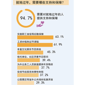 1月28日消息,中國青年報發(fā)布的調查顯示,85.4%受訪者明確表示2021年會就地過年,96.8%受訪者認同就地過年是為疫情防控作貢獻。同時,94.7%受訪者認為需要對就地過年的人提供支持和保障。受訪者中,76.5%的離開家鄉(xiāng)在外工作。