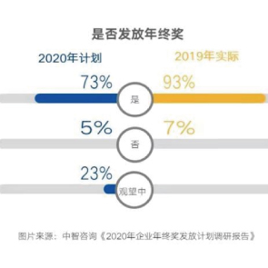 1月22日消息,CIIC發(fā)布的《2020年企業(yè)發(fā)放年終獎(jiǎng)計(jì)劃調(diào)研報(bào)告》顯示,疫情影響下,超七成企業(yè)發(fā)放2020年終獎(jiǎng),四成企業(yè)2020年終獎(jiǎng)?lì)~度上升,增幅大多在10%以?xún)?nèi),從2020年市場(chǎng)整體水平來(lái)看,企業(yè)年終獎(jiǎng)人均為2.1萬(wàn)元。