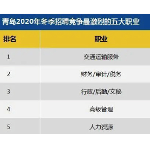 12月29日消息,智聯(lián)招聘發(fā)布的《2020年冬季中國雇主需求與白領(lǐng)人才供給報告》顯示,青島2020年冬季求職期平均薪酬8065元/月,較上一季度薪酬上升2.2%,同比增速達(dá)2.7%,排全國第24位。交通運(yùn)輸服務(wù)仍居競爭最激烈五大職業(yè)首位。