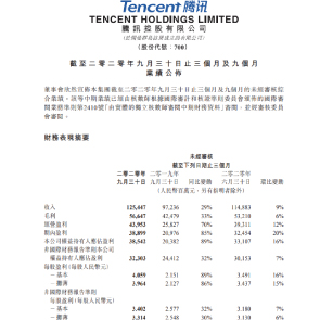 11月13日消息,騰訊發(fā)布的財報顯示,2020年三季度騰訊游戲收入414.22億元,同比增長45%。截至今年9月底,騰訊共77592名員工。最近3個月的總酬金成本為人民幣177.03億元。員工人均月薪7.6萬,跟2020年二季度末的相比,漲薪1千。