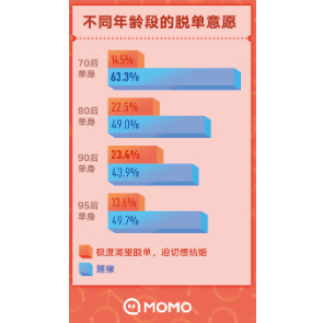 11月9日消息,MOMO發(fā)布的2020雙十一光棍節(jié)報告》顯示,20%的單身網(wǎng)民極度渴望脫單,迫切想結(jié)婚,圈子小是大部分網(wǎng)民單身的主因,社交軟件是網(wǎng)民心中脫單最有效的途徑,44.6%的95后通過社交軟件成功脫單,超三成網(wǎng)民支持裸婚,六成網(wǎng)民要求必有房。