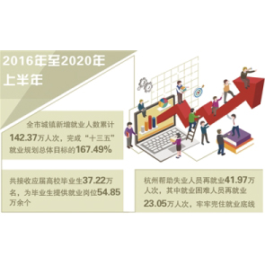 11月9日消息,杭州市人社局統(tǒng)計顯示,2016至2020上半年,全市城鎮(zhèn)新增就業(yè)人數(shù)累計142.37萬人次,完成總目標(biāo)的167.49%,共接收應(yīng)屆高校畢業(yè)生37.22萬名,為畢業(yè)生提供就業(yè)崗位54.85萬余個。2016至2019年間,每年杭州城鎮(zhèn)登記失業(yè)率均維持2%以下。