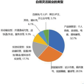 11月3日消息,智聯(lián)招聘發(fā)布的《2020年白領(lǐng)秋季跳槽及職業(yè)發(fā)展調(diào)研報告》顯示,白領(lǐng)靈活就業(yè)已成趨勢,18.7%的白領(lǐng)在一年內(nèi)擁有過副業(yè)或靈活就業(yè),57.1%有副業(yè)白領(lǐng)仍認為主業(yè)不可替代。在就業(yè)類型上,涵蓋個人微商、賣保險、電商、擺地攤等產(chǎn)品銷售類占比最高,達32.7%。