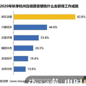 11月3日消息,智聯(lián)招聘發(fā)布的《2020年秋季杭州白領(lǐng)跳槽及職業(yè)發(fā)展調(diào)研報告》顯示,2020年秋季杭州白領(lǐng)70%有跳槽行動,高于2019年同期59.4%。對薪酬不滿是跳槽主因。當被問到愿意犧牲什么去換取更多工作成就,82.8%選擇犧牲娛樂消遣。