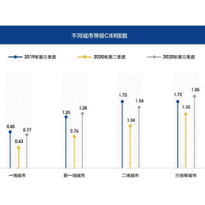 11月3日消息,智聯(lián)招聘發(fā)布的2020年第三季度《中國就業(yè)市場景氣報告》顯示,2020年三季度一線城市的CIER指數(shù)為0.77,就業(yè)競爭激烈,新一線城市CIER指數(shù)為1.28,二線城市CIER指數(shù)為1.58,三線等城市CIER指數(shù)為1.85。