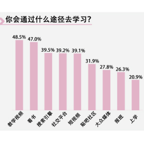 9月24日消息,中國(guó)青年報(bào)發(fā)布的調(diào)查顯示,從學(xué)習(xí)動(dòng)機(jī)上看,出于興趣和好奇心去學(xué)習(xí)的受訪(fǎng)者最多,比例為58.5%。53.7%受訪(fǎng)者坦言自己的學(xué)習(xí)長(zhǎng)期但不系統(tǒng)。學(xué)習(xí)途徑上看,48.5%看教學(xué)視頻是受訪(fǎng)者使用最多的途徑,然后看書(shū)47.0%。