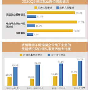 9月9日消息,智聯(lián)招聘發(fā)布的《2020雇傭關(guān)系趨勢(shì)報(bào)告—后疫情時(shí)代的新雇主經(jīng)濟(jì)》顯示,55%受訪者表示所在企業(yè)進(jìn)行業(yè)務(wù)調(diào)整,56.3%表示原有工作業(yè)務(wù)減少。2020年二季度靈活就業(yè)招聘需求增長(zhǎng)76.4%。