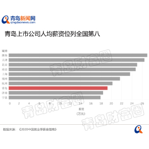 8月19日消息,標點財經研究院和投資時報發(fā)布的《2020中國就業(yè)季薪金指南》顯示,青島上市公司以19.24萬元年薪列第八。61個城市中,均薪最高的仍是濰坊,超50萬元。2019年上市公司均薪超20萬元的,為天津26.45萬、北京25.01萬。