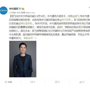 6月17日消息,中興通訊宣布,任命倪飛為中興通訊終端事業(yè)部總經(jīng)理,全面負(fù)責(zé)中興通訊終端業(yè)務(wù)。倪飛同時(shí)擔(dān)任努比亞總裁。倪飛2001年加盟中興通訊,2012年出任努比亞智能手機(jī)總經(jīng)理,2019年5月?lián)闻葋喖夹g(shù)有限公司總裁。