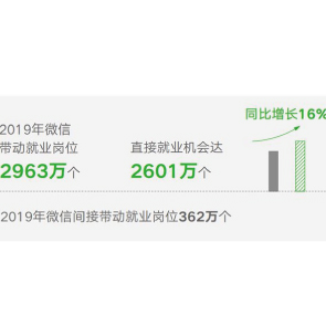 5月14日消息,微信與中國信通院發(fā)布的《2019-2020微信就業(yè)影響力報告》顯示, 2019年微信帶動就業(yè)崗位2963萬個,其中直接帶動就業(yè)崗位達2601萬個。2019年微信帶動的直接就業(yè)機會中1519萬個是兼職就業(yè),占總直接就業(yè)機會近6成。