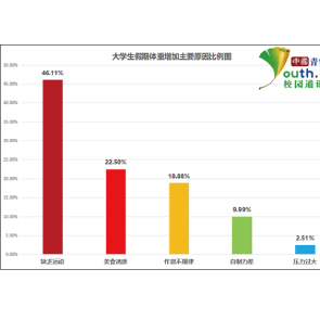 5月11日消息 ,中國青年網(wǎng)校園通訊社發(fā)布的調(diào)查顯示,超四成大學(xué)生假期胖了4-6斤,缺乏運(yùn)動、美食誘惑、作息不規(guī)律成變胖主因,近六成大學(xué)生假期偶爾進(jìn)行體育鍛煉,近九成擔(dān)心變胖影響形象,超六成開學(xué)后會減肥。
