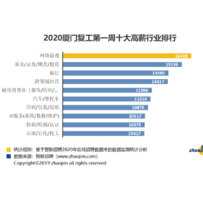 2月13日消息,智聯(lián)招聘發(fā)布的調(diào)查顯示,廈門排名前十的行業(yè)平均薪酬均過萬,其中網(wǎng)絡(luò)游戲行業(yè)和基金/證券/期貨/投資行業(yè)分別以16000元和15186元的待遇位列第一第二。同時,廈門以平均8958元/月首周薪酬排全國第十一。
