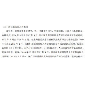 1月22日消息,前程人力公告稱,任命黃宗勇為公司分管(經(jīng)營(yíng))的副總經(jīng)理,任職期限3年。上述任命人員不持有公司股份,不是失信聯(lián)合懲戒對(duì)象。本次任命原因?yàn)椋b于公司原副總經(jīng)理游霞因個(gè)人原因辭去副總經(jīng)理職務(wù)。