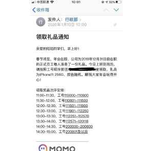 1月23日消息,智聯(lián)招聘發(fā)布的數(shù)據(jù)顯示,陌陌人手一部頂配版iPhone11,華為發(fā)現(xiàn)金,老員工百萬(wàn)以上,格力電器3200元格力色界手機(jī),小米8億元股份激勵(lì),阿里、百度獎(jiǎng)金、加薪、股權(quán)激勵(lì),美團(tuán)、字節(jié)跳動(dòng)、滴滴等多發(fā)1-4個(gè)月工資。