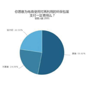 12月24日消息,中國青年報發(fā)布的調(diào)查顯示,86.6%受訪者覺得電商領(lǐng)域存在塑料袋浪費(fèi)現(xiàn)象。53%受訪者表示,愿意為電商使用可再利用的環(huán)保包裝支付一定費(fèi)用。此外,90.6%受訪者認(rèn)為有必要解決電商領(lǐng)域塑料袋浪費(fèi)問題。
