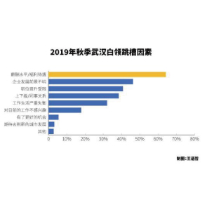 11月1日消息,智聯(lián)招聘發(fā)布的報(bào)告顯示,2019年秋跳槽季武漢95后白領(lǐng)中70.4%認(rèn)為薪酬是導(dǎo)致其跳槽的因素,而70后為59.6%。同時(shí),70后白領(lǐng)中48.2%認(rèn)為企業(yè)發(fā)展前景不明是導(dǎo)致其跳槽的因素,而在95后中占比僅為40.7%。