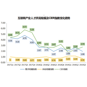 10月22日消息,智聯(lián)招聘發(fā)布的《2019互聯(lián)網(wǎng)產(chǎn)業(yè)人才發(fā)展報(bào)告》顯示,互聯(lián)網(wǎng)產(chǎn)業(yè)CIER指數(shù)由2017年的5降至2018年的3,2019年一季度1.81回升至三季度的2.74。2019年1-5月5G相關(guān)招聘職位數(shù)同比增速806.60%,而投遞簡歷同比增速僅151.04%。