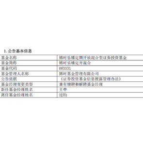 10月21日消息,博時(shí)基金管理有限公司公告稱,因崗位調(diào)動(dòng)原因,博時(shí)樂(lè)臻定開(kāi)混合原基金經(jīng)理過(guò)鈞(15年老將)離任,由王申接替管理該基金。王申2013年至今歷任博時(shí)基金固定收益研究主管、固定收益總部研究組副總監(jiān)。